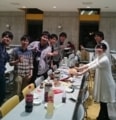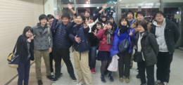 12月22日、古河にて伊藤研の忘年会を開催しました。ビンゴ大会では、M2の2名が一番の景品をいただきました。(古河駅での集合写真・稲見君がいつもの顔ポーズをしています。)